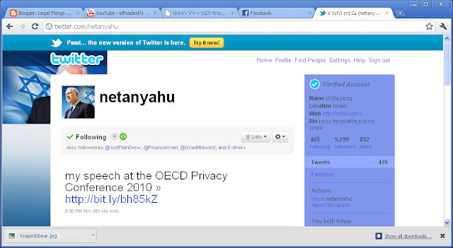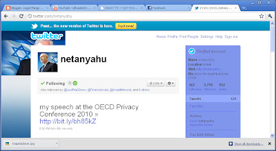 Prior to today, Bibi's official Twitter feed, which is mainatined by Dr. Eitan Eliram, had not been updated since November 18th, 2010 @ 0626 MST: